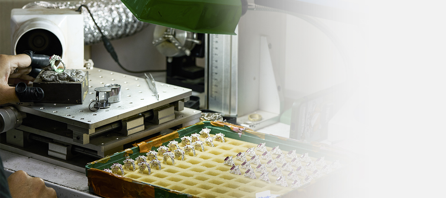 نقدم خدمات تصنيع المجوهرات الذهبية من الذهب الخالص أو الذهب عيار ك حسب الطلب أو بكميات كبيرة. بدءاً من التصميم وحتى الإنتاج النهائي، يتولى خدمتكم فريق متخصص بخدمة فردية. ندعم جميع متطلبات التصنيع المرن للمجوهرات الذهبية المخصصة، بما في ذلك تركيب الماس والأحجار الكريمة، لضمان تحقيق تصميم مجوهراتك المثالي ورفع تنافسية علامتك التجارية في مجال المجوهرات.