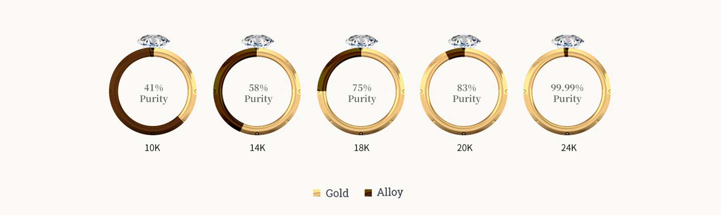 عيار 24 قيراط (نقاوة 99.99%): كما ذكرنا، هذا هو الذهب الخالص. وهو الأكثر قيمة لكنه الأكثر ليونة وقابلية للتشكيل. ما لم تتم إضافة معادن أخرى إليه، سيظهر علامات واضحة بسهولة خلال الاستخدام اليومي.